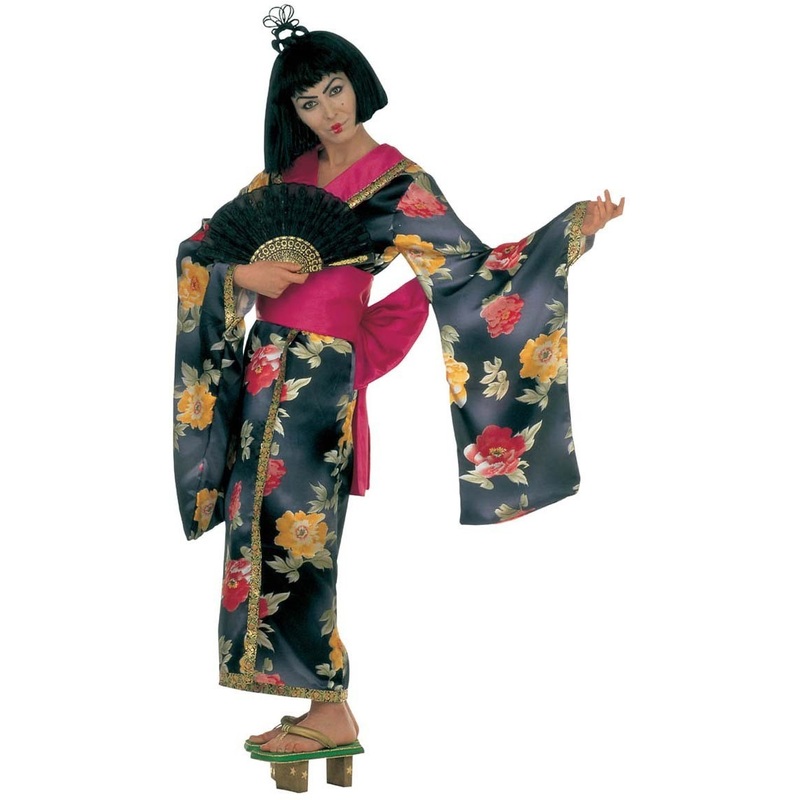 Included: kimono Belt with bow Not included: black wig black headdress black fan golden shoes Themes & ideas: Asia, Countries, Continents & Cities, Culture & Traditions, Geisha Colour: Colourful Material: 100% Polyester